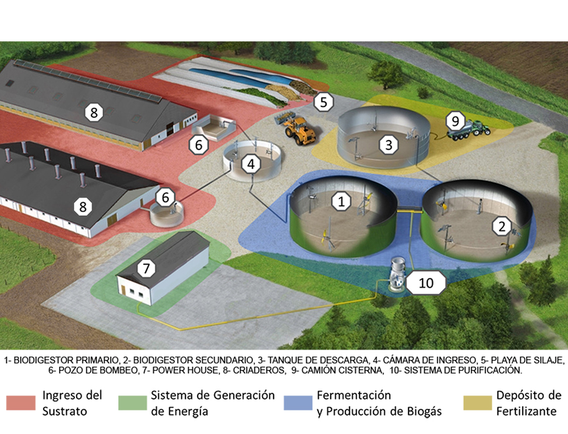 El biogás es el producto de una fermentacion anaerobia (sin la presencia de oxigeno) de materia orgánica como cultivos energéticos, purin de animales, desechos cloacales, restos de frigoríficos e industrias alimenticias.